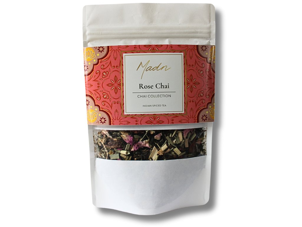 Rose Chai – bio čajová směs k přípravě horkého nálevu: jemně květinový profil růže s elegantně kořenitým chai akcentem (např. skořice, kardamom, zázvor). Skvěle chutná samotný i v „chai“ stylu s trochou mléka; v létě potěší i jako lehce vychlazený nápoj.