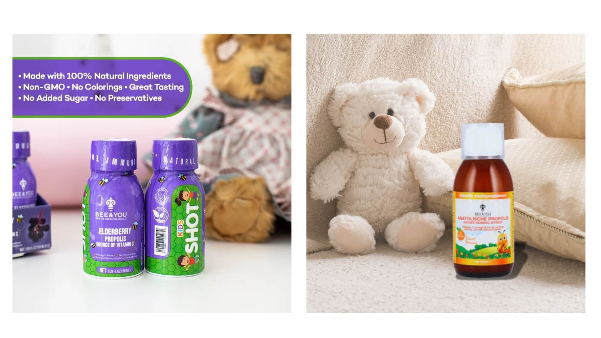 BEE&YOU nabízí širokou škálu přírodních produktů, které spojují sílu přírody a inovaci pro podporu zdraví a pohody. Mezi jejich produkty patří například dětský shot s černým rybízem, propolisem a vitamínem C, který je ideální pro každodenní podporu imunitního systému dětí, nebo dětský sirup s propolisem a raw medem, který poskytuje přírodní podporu při nachlazení a respiračních potížích.