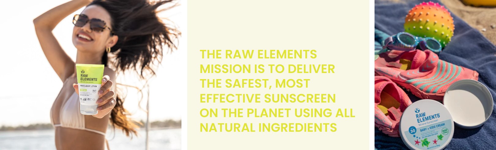 Raw Elements' goal is to offer the safest and most effective sunscreens on the market, made with only natural ingredients.