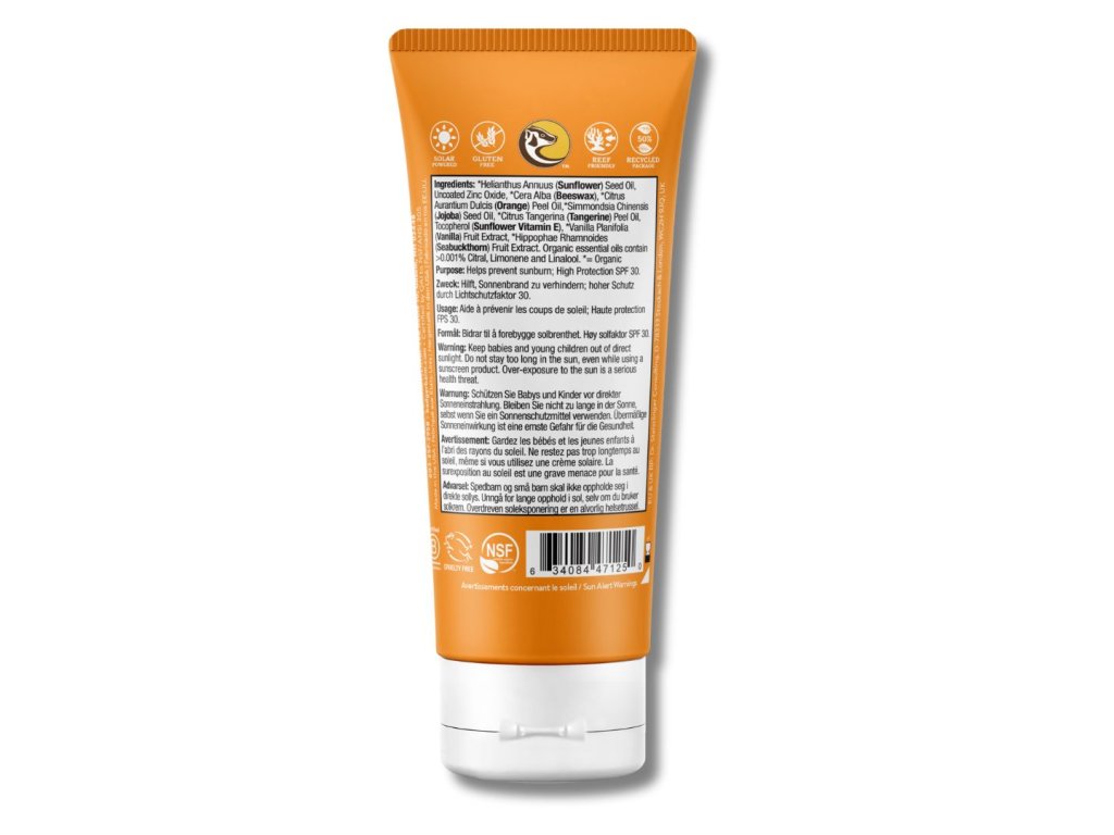 The key element is uncoated zinc oxide without nanoparticles, which does not leave a white film. Kids will love the scent of tangerine, orange and vanilla, making it easy for parents to apply.