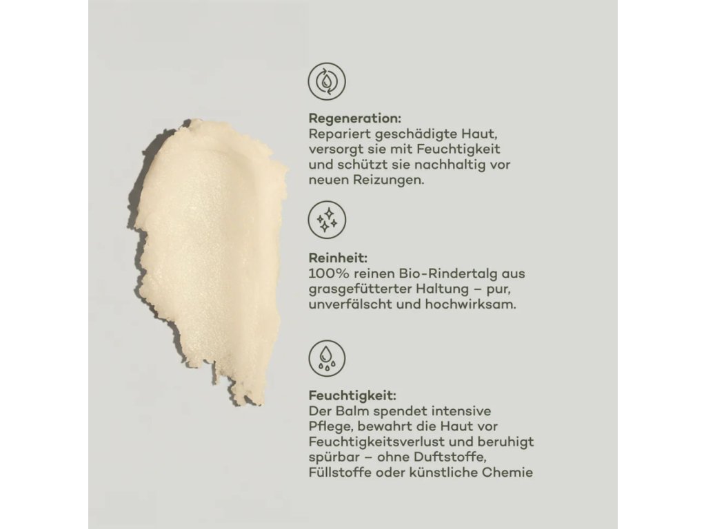 Tallow balms are built on a handful of carefully selected ingredients instead of complex formulas with long ingredient lists. The aim is to offer well-tolerated care with high comfort for dry and sensitive skin.