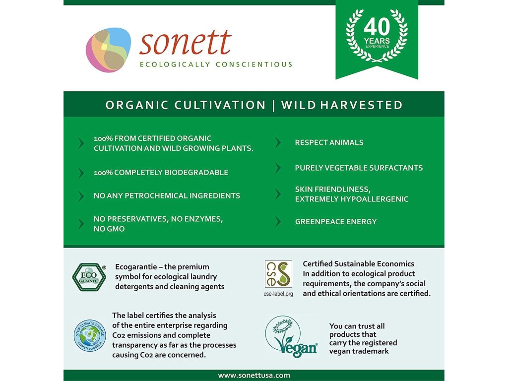 Sonett's superior quality is characterised by its careful selection of raw materials - it contains so-called dynamised ingredients, environmentally friendly and environmentally protective manufacturing processes, and biodegradability.
