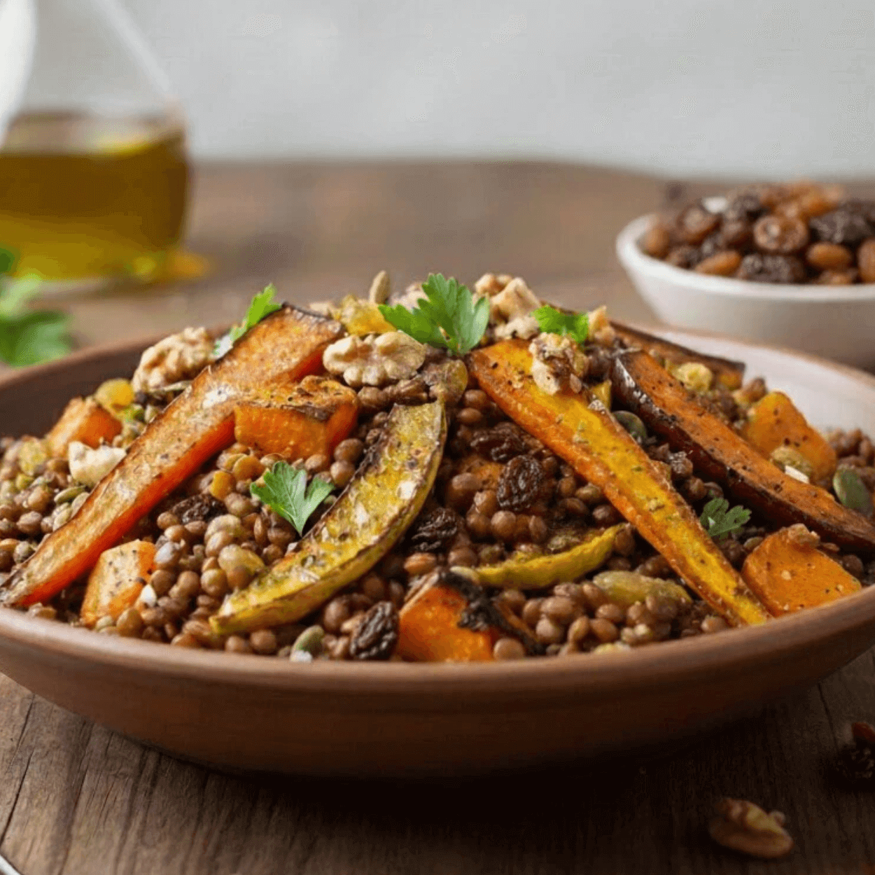 Tip: The sweet-savoury contrast of lentils and sultanas works great in a tortilla, with bulgur, or as a side to grilled vegetables.
