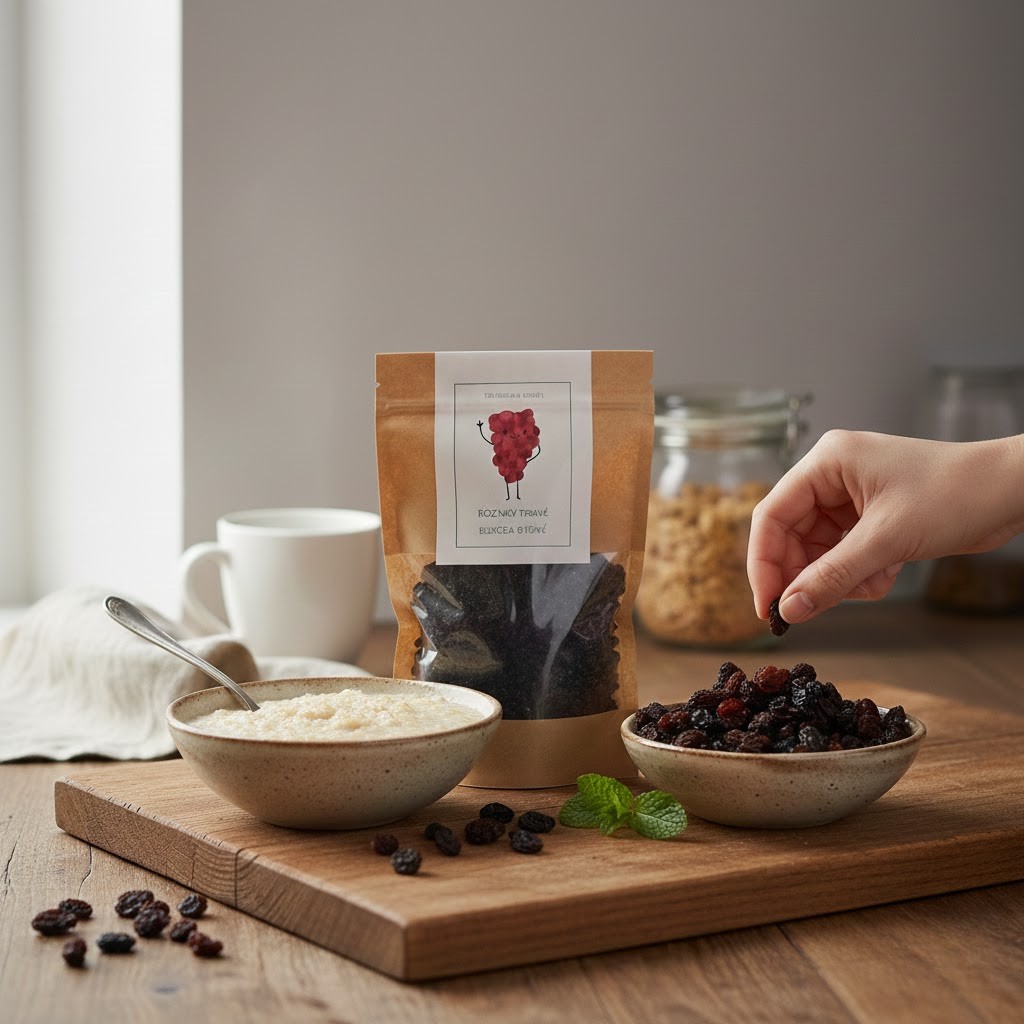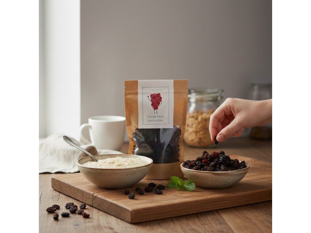 Besides "snacking" directly from the package, unsulphured black raisins are perfect for oatmeal, homemade granola, yogurts, and smoothie bowls, as well as for baking – they enhance the flavor of bread, Christmas cake, bundt cake, cookies, or strudel. They also work well in salads, couscous, or bulgur, combined with cheese or nuts, adding natural sweetness and juicy contrast.