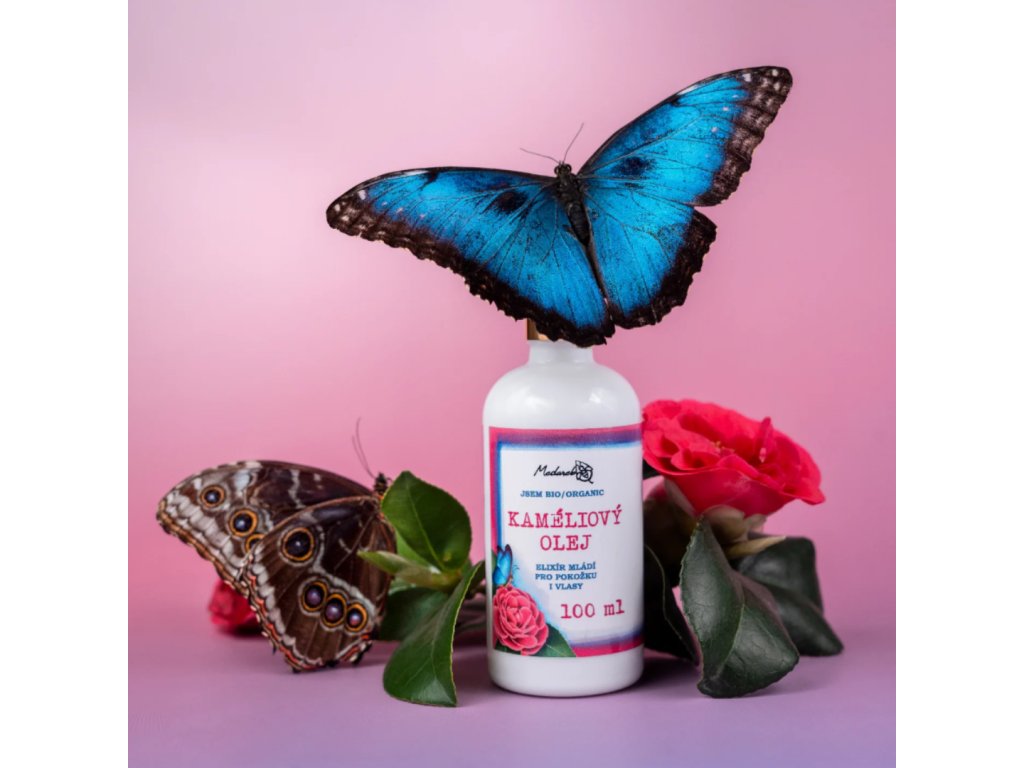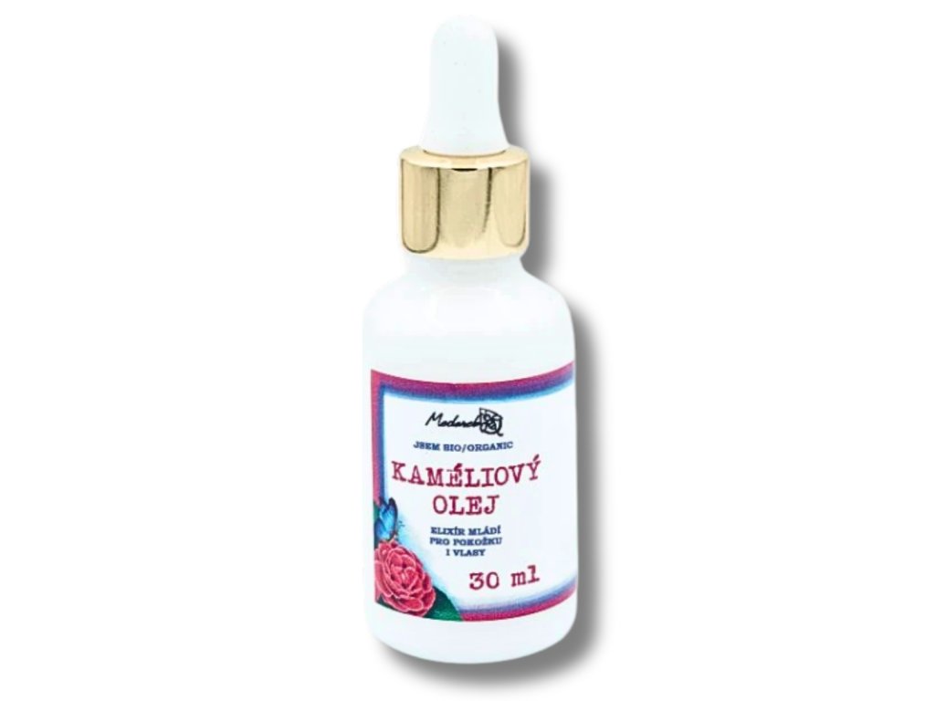 Kaméliový olej – japonský olej krásy má přírodní bio kvalitu a 100% jednosložkové složení. Obsahuje pouze olej z rostliny kamélie japonské (Camellia japonica), známý jako Tsubaki olej, který patří mezi lehčí pleťové oleje. Snadno se vstřebává, nezatěžuje pokožku a hodí se pro každodenní péči o pleť, tělo i vlasy.