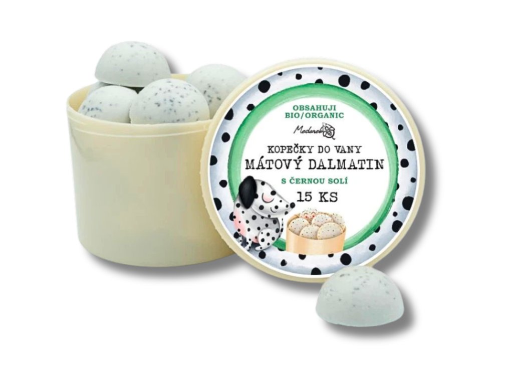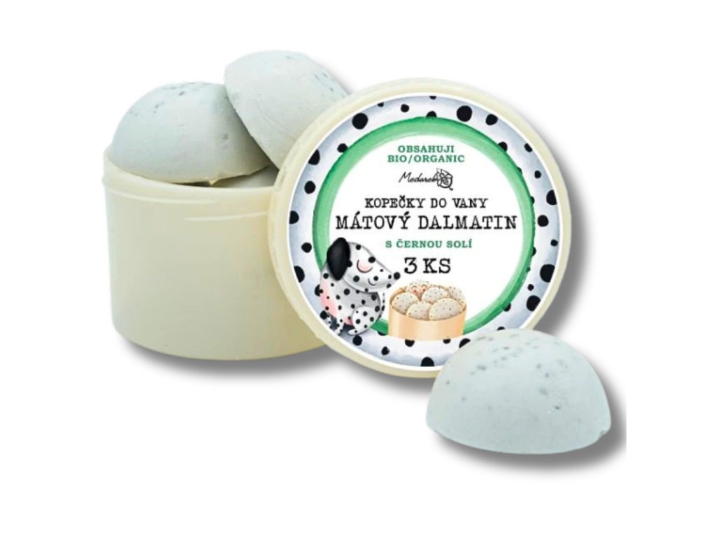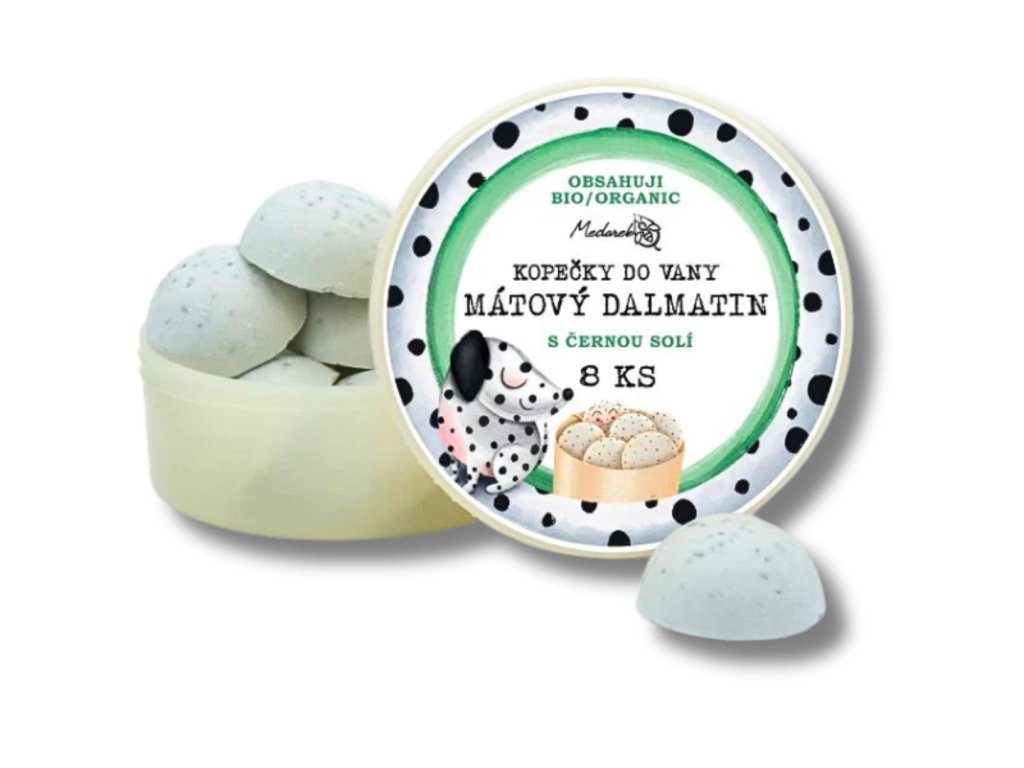 Medarek - Kopečky do vany Mátový dalmatin s černou solí – osvěžující koupel od 3 let