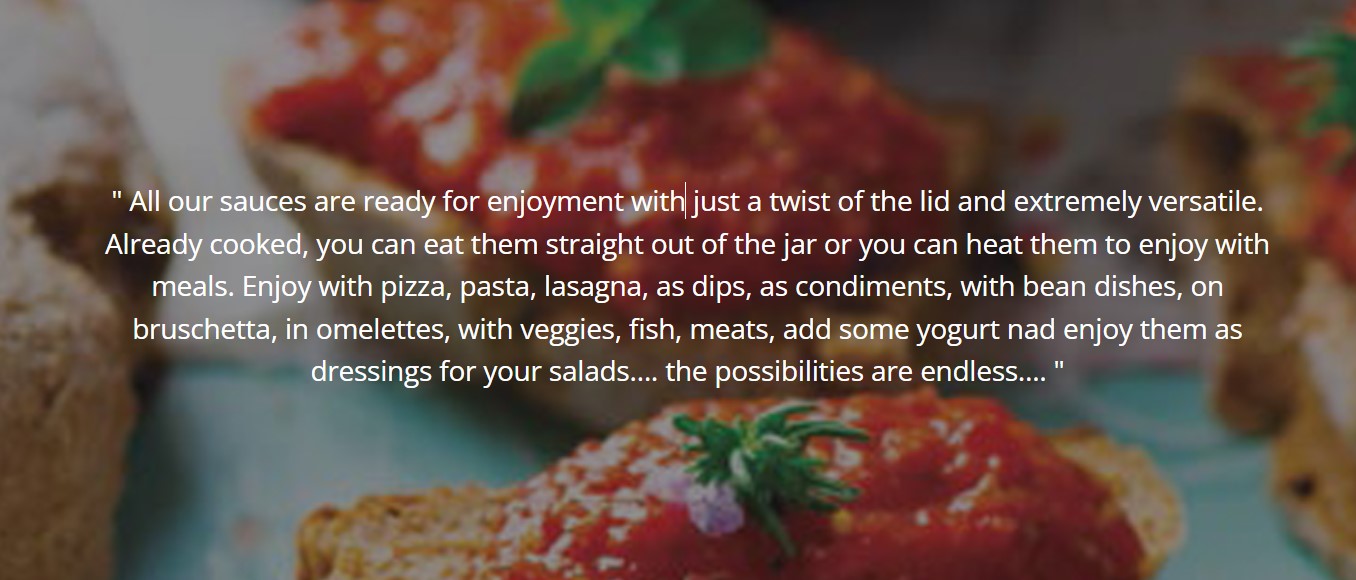 Všechny výrobky jsou 100% přírodní, bez konzervantů, aditiv a umělých barviv. Stačí otevřít skleničku a řecká kuchyně je na vašem stole – rychle, chutně a jednoduše.