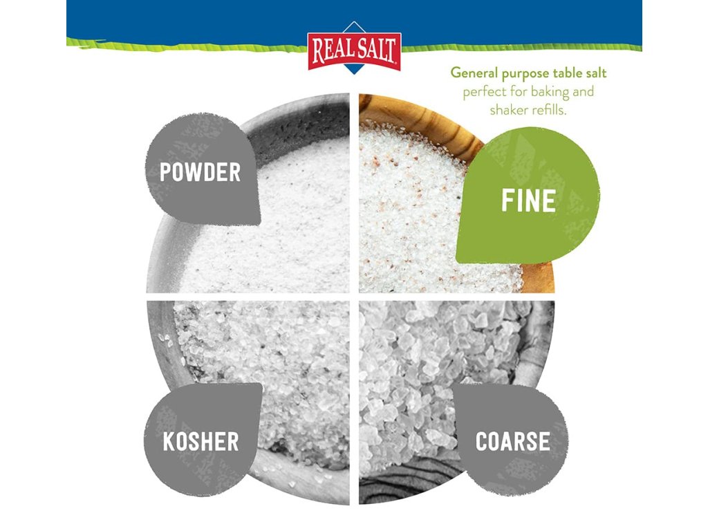 Real Salt™ vám dodáváme v několika variantách, od pudrové přes jemně mletou, hrubozrnnou, košer až po ochucené.