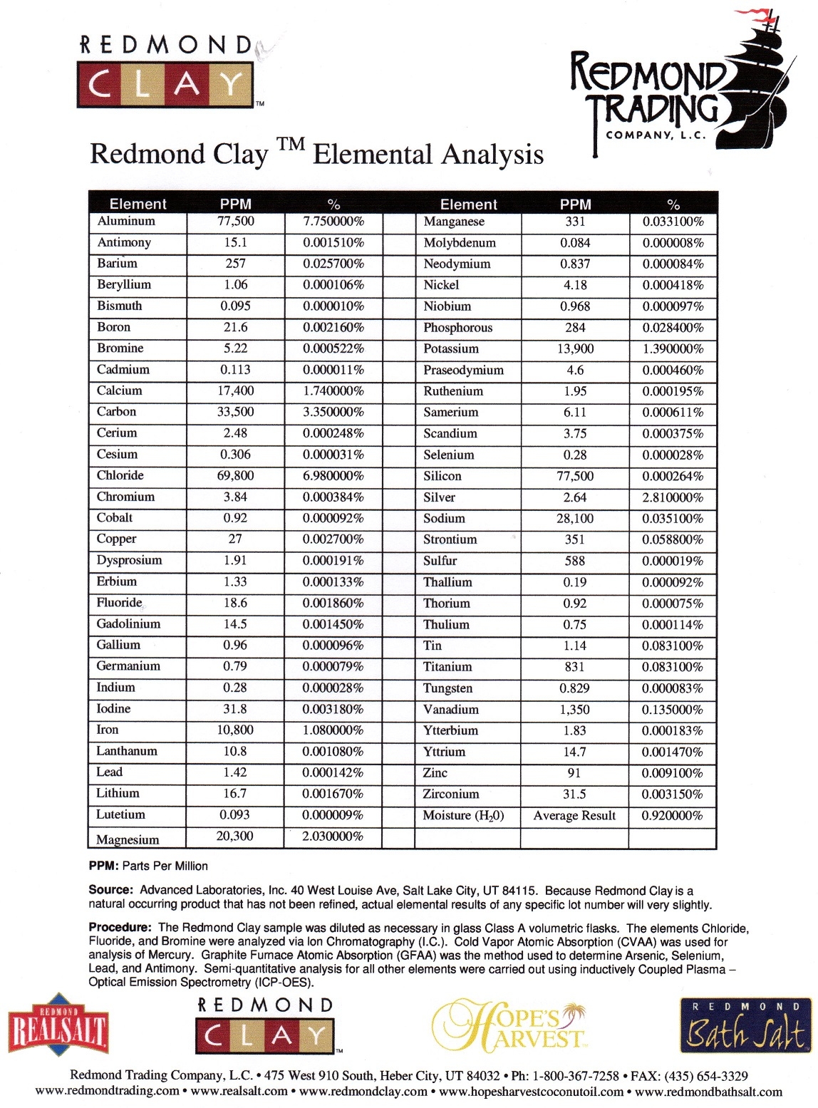 Kořeny užívání Redmondského jílu sahají stejně daleko jako zvyk dávat na včelí bodnutí bahenní obklad. Podle geologů Redmondský jíl vznikl ze sopečného popela, který se před zhruba 150 miliony let usadil v mořské vodě, kde se z něj později vyvinul sodný bentonitový jíl. Bentonitové jíly se běžně rozdělují na vápnitý a sodný bentonit. Redmondský Jíl obsahuje jak podíl minerálu sodíku (7.75%), tak i o něco menší podíl minerálu vápníku (1.49%), což je v přírodních nalezištích neobvyklá kombinace. Tato kombinace z něj činí vysoce účinný prostředek pro vnitřní detoxikaci těla, tak i pro efektivní vnější kožní aplikace.