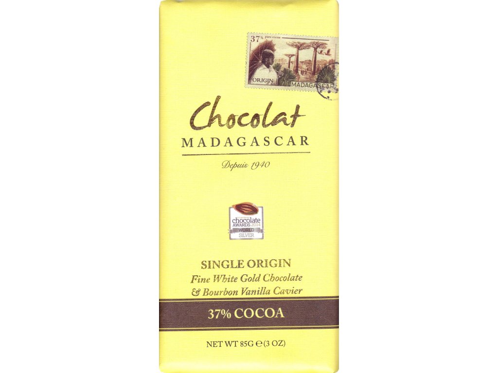 37% biela čokoláda s kaviárom zo strukov vzácnej bourbonskej vanilky od značky Chocolat Madagascar je úplne neuveriteľná - jemná, krémová, kvetinová, ovocná s typickými vanilkovými tónmi. Okrem toho obsahuje 1,8-krát viac kakaa a o 45 % menej pridaného cukru, ako vyžadujú normy EÚ pre tento typ čokolády. Ide teda o skutočne poctivú čokoládu, ktorú výrobca dobrovoľne vyrába v oveľa vyššej kvalite, než stanovujú predpisy. Kakaové maslo bez zápachu v prírodnej forme sa vyrába z kakaových bôbov zozbieraných v údolí Sambirano na severozápade Madagaskaru.