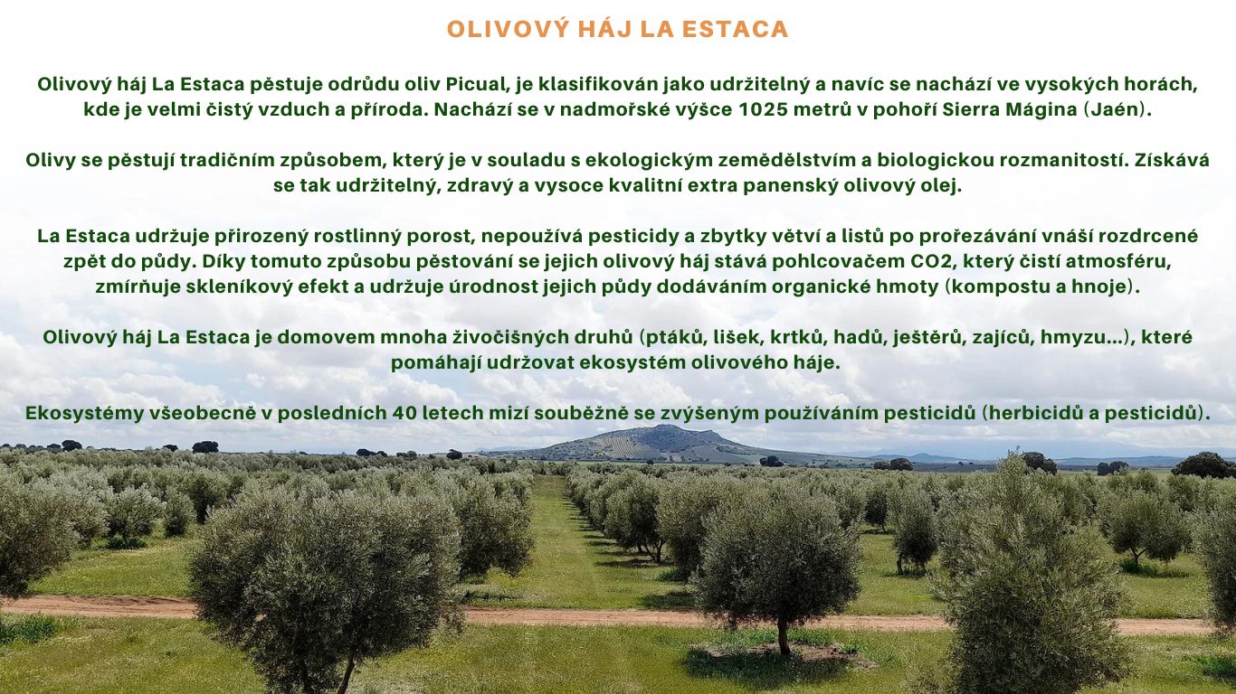 Extra panenský olivový olej - Andalúzia (1025 m n. m.) španielska odroda olív Picual, extra nízka acidita, horské podnebie (1025 m n. m.)