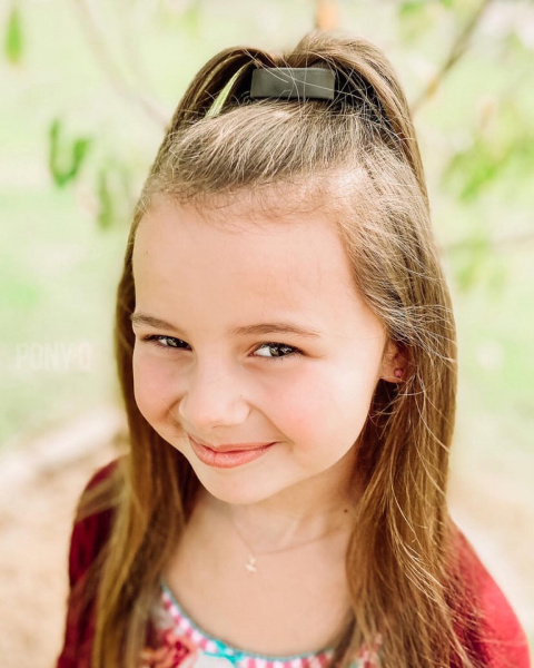 - Pony-2.O je vhodný pre veľmi jemné, riedke detské vlasy, ak chcete vytvoriť jeden vysoký chvost, dva chvosty alebo polovičný chvost.