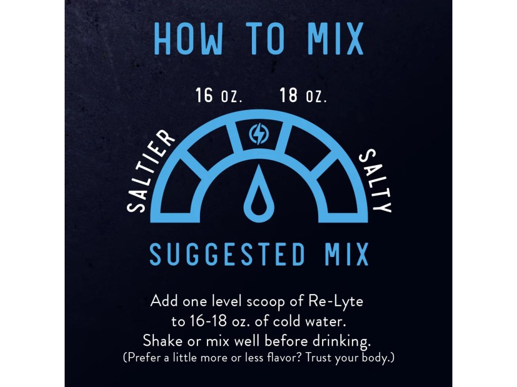 Re-Lyte™ obsahuje päť základných elektrolytov - sodík, draslík, chlorid, vápnik a horčík - v optimálnom pomere, ktorý oceníte počas každodenného pitného režimu alebo zvýšenej fyzickej aktivity. Táto zmes bola vytvorená s dôrazom na prírodné zložky a skvelú chuť, takže je ideálnou voľbou pre všetkých, ktorí uprednostňujú výrobky bez zbytočných prísad.