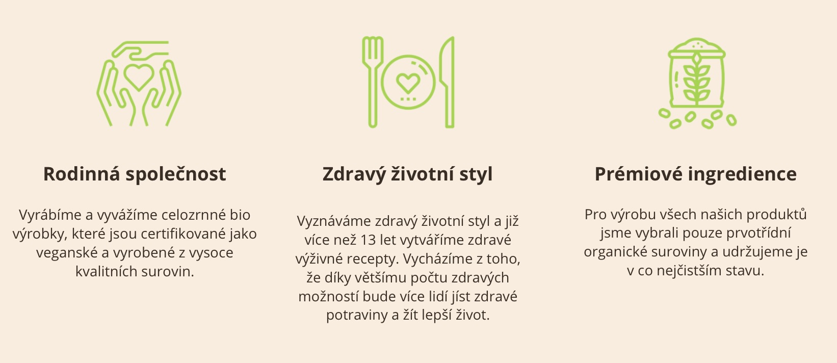 Jejich hlavní misí je podporovat zdravý životní styl prostřednictvím výroby organických celozrnných potravin, které přispívají k pohodě každého jednotlivce a jsou vhodné kdykoli a kdekoli.